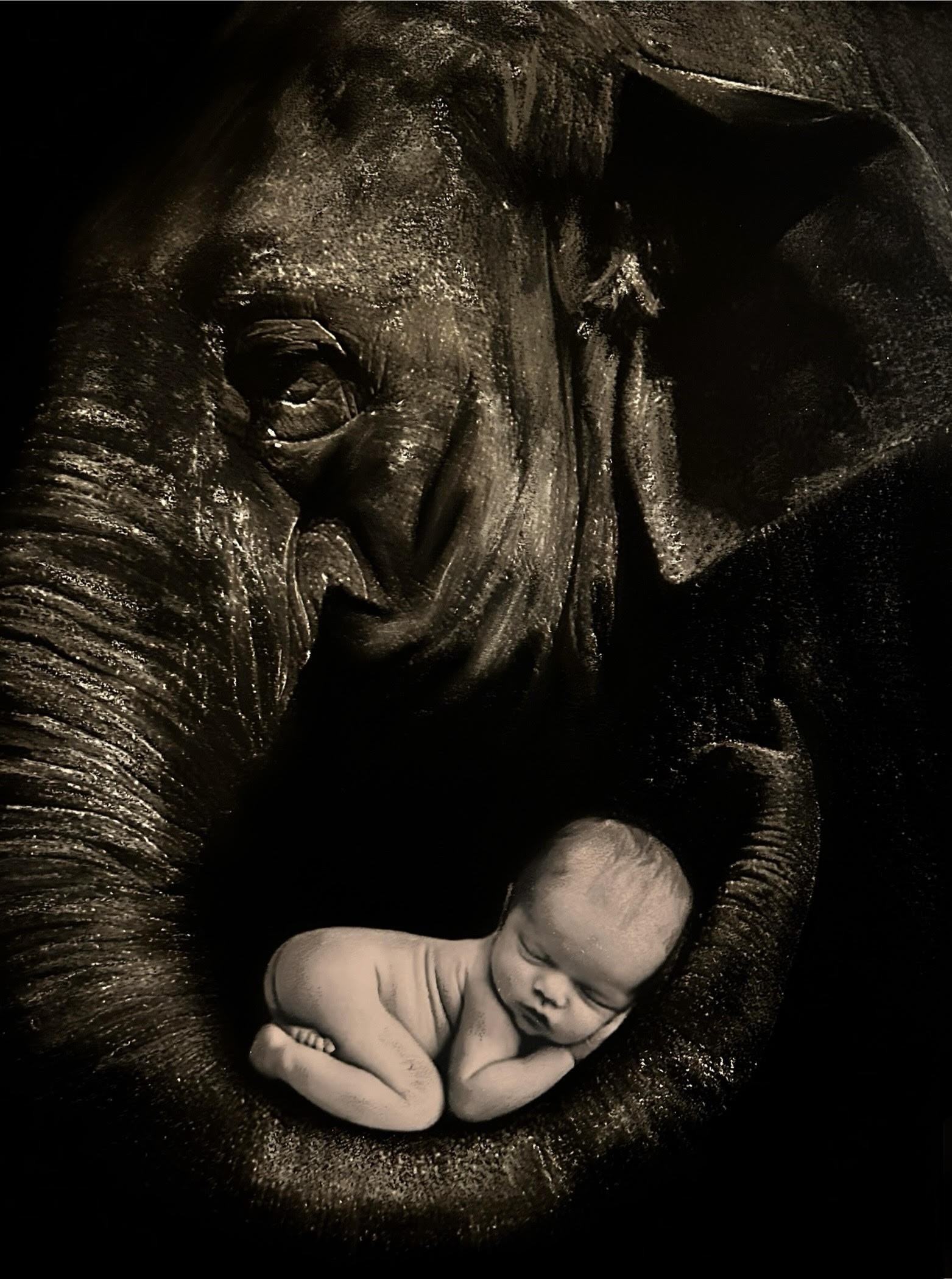 combat. A l’image de l’éléphant portant son petit durant deux ans cette œuvre met en lumière toute
